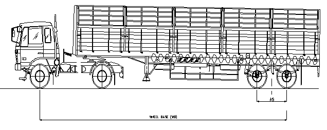 Note: The dimension and weight limits of the tractor unit shall comply with provisions for the appropriate rigid vehicles subject to maximum gross vehicle weight of 25 tonnes in the case of 3-axle tractor.